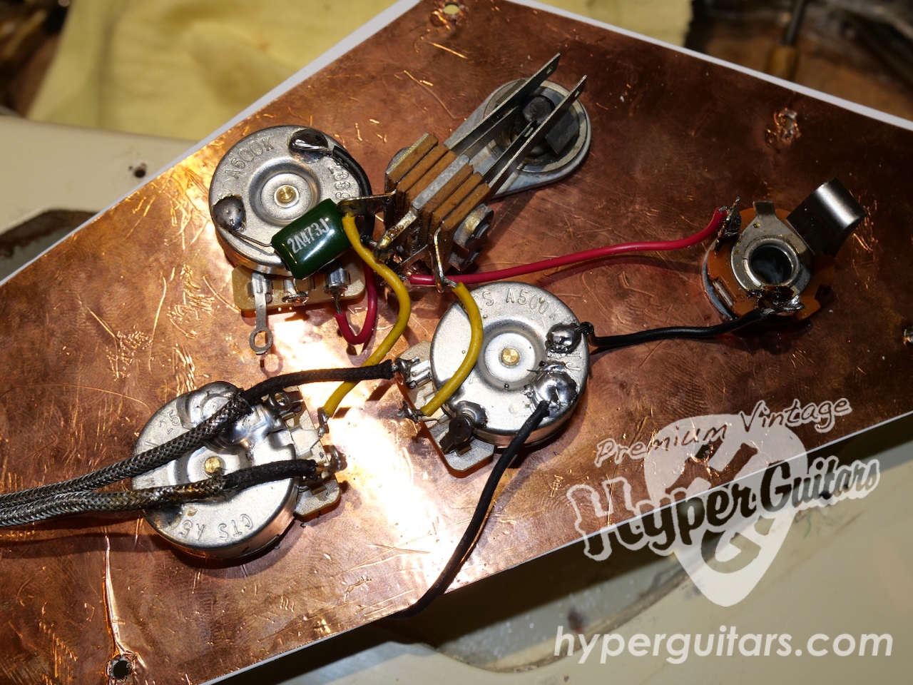 フロントP.U.はニューパフ、リアはナンバード、その他、ブリッジ、テールピース以外は全交換の弾き倒しギアです。