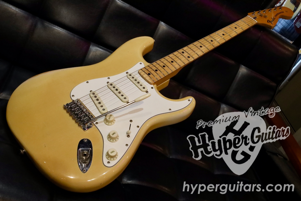 アッシュ目透けるブロンドのボディに、メイプルネックの74年製。